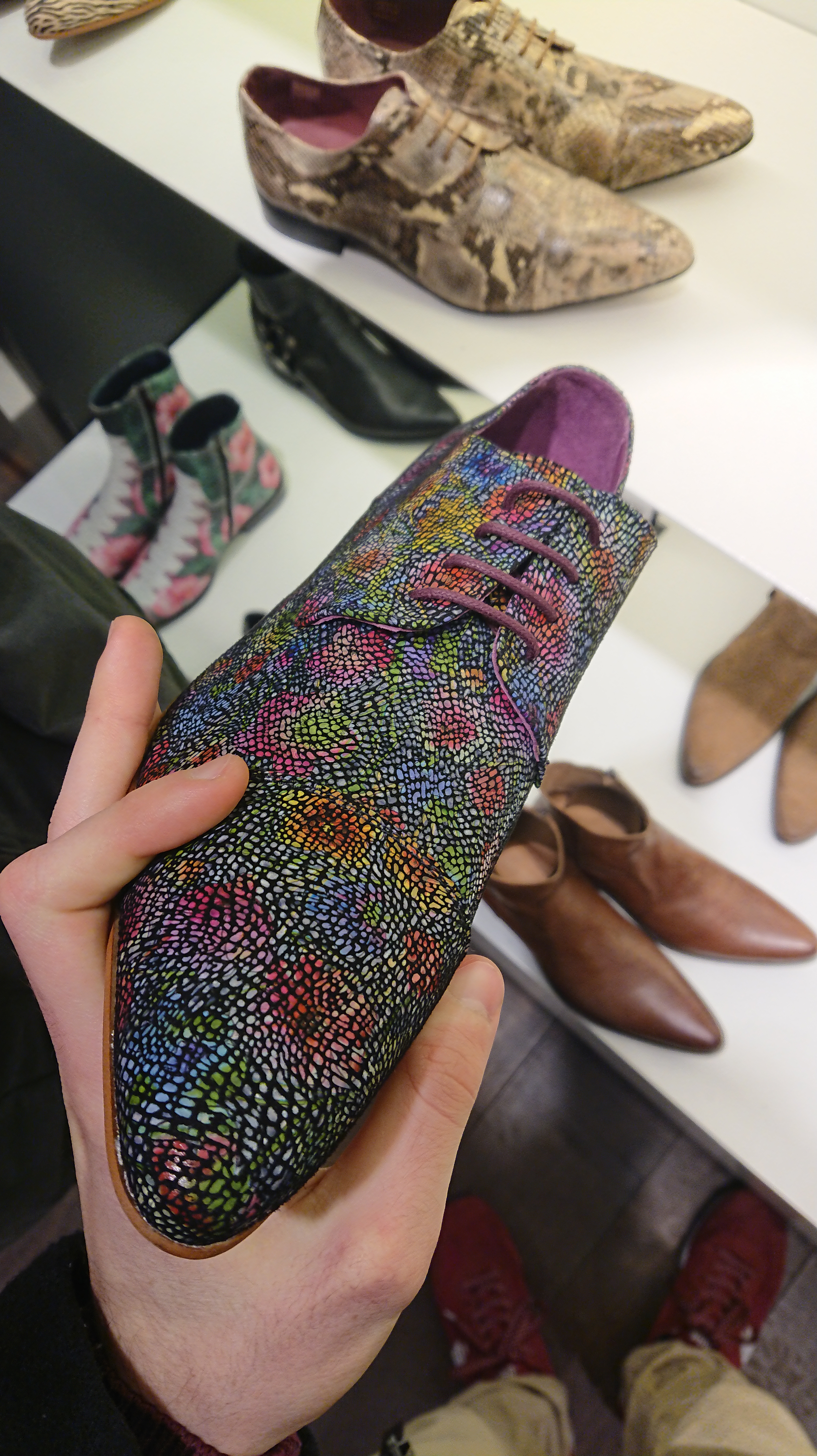 Then we went along. She showed me the famous hot spots, including a luxurious store with some weird-ass crocodile leather shoes.