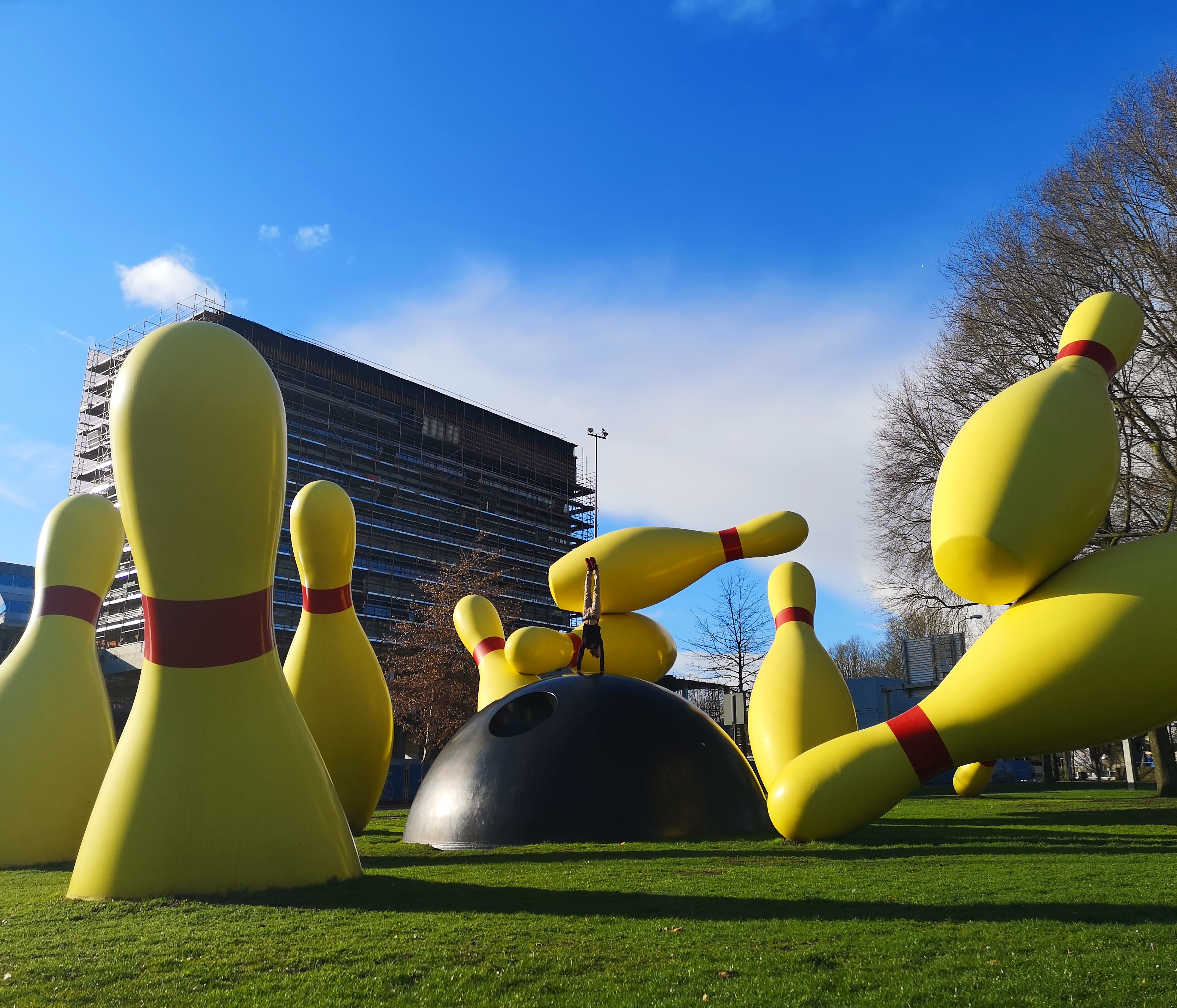 There was one more place She was eager to show; a monument with giant sized Bowling Pins & a Ball