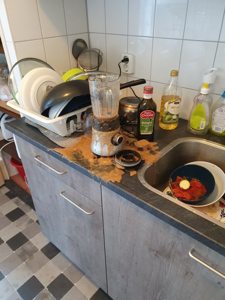 To cool down a little, I started with the kitchen. Wipe down the shit from the walls, the floor, the blender. When the mess was gone, I had to figure out how to finish what I started.