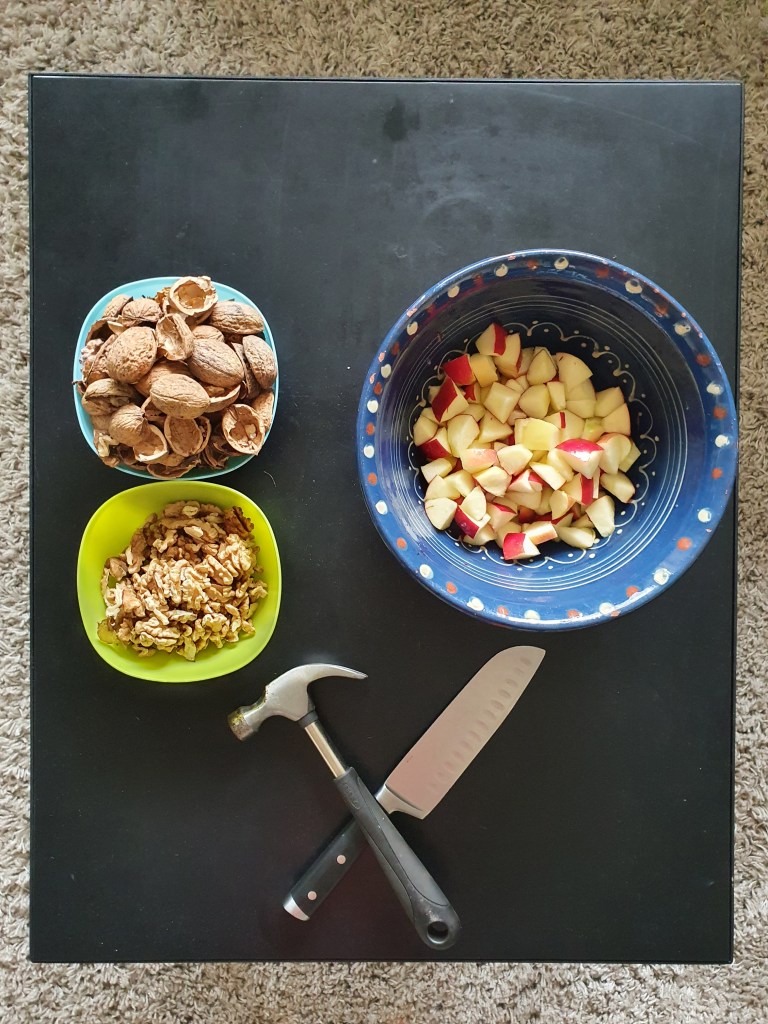 I remember being 9 or 8, smashing walnuts with a hammer on our concrete driveway, trying to extract the fruit of our nut-tree, with barely any crumbles coming out of the hard shell, while my fingers were bleeding under my nails from all the pointless scratch attempts.