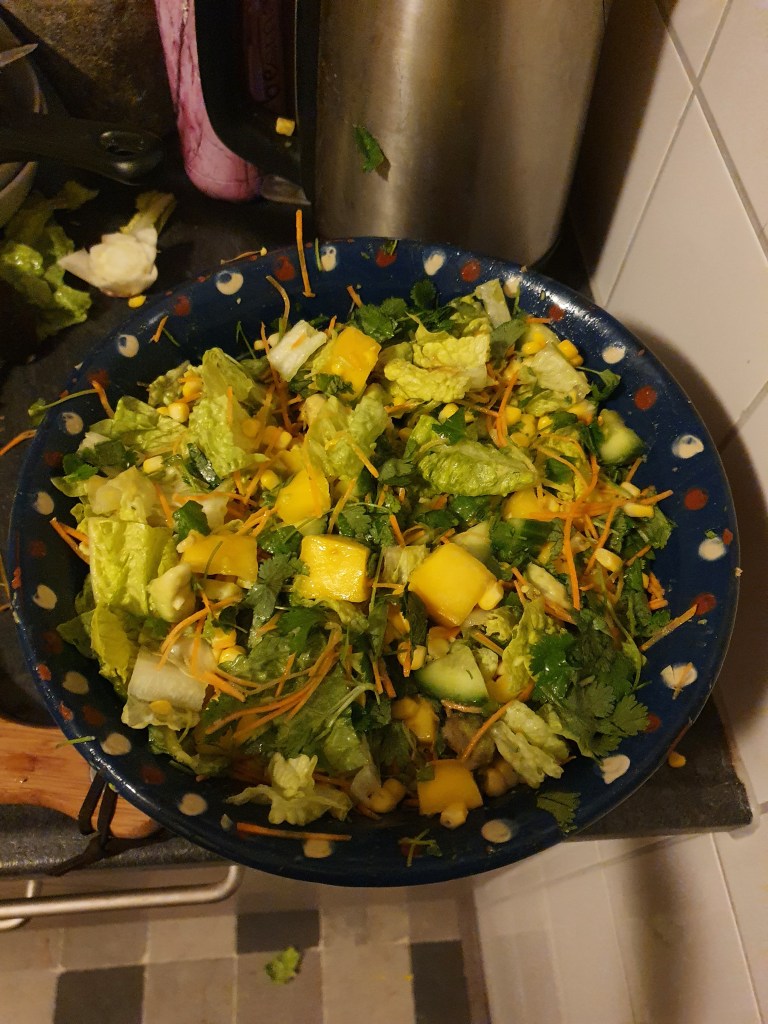 We jumped back to work with my kitchen fairy, and while I prepared the salad, she literally finished every single other thing.